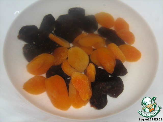 Чернослив с курагой запариваем кипятком и оставляем на несколько минут.