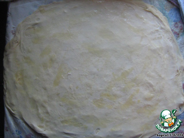 Так поступаем со всеми слоями теста - вытягиваем, кладем друг на друга и каждый смазываем маслом.