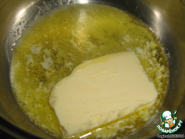 Пока мы работаем с первым кусочком теста, нужно растопить сливочное масло.