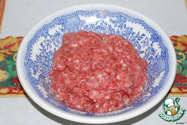И приступаем к начинке. Фарш говяжий (но можно и свинину, просто татары не едят свинину по религиозным соображениям)солим, перчим и добавляем столовую ложку растительного масла.
