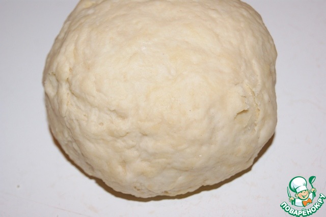 Из муки, воды, соли и 75 мл масла замесить тесто. Скатать в шарик.