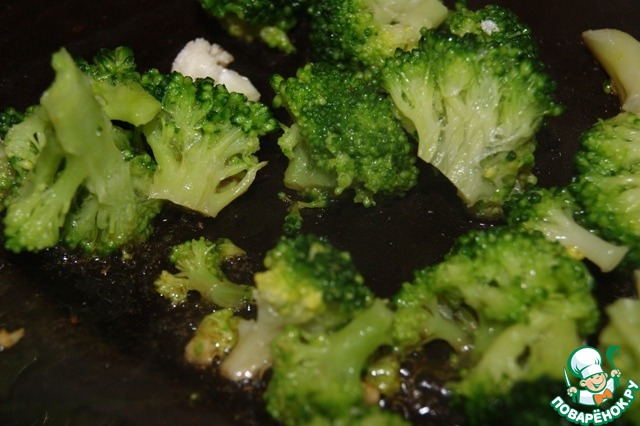 Разобранную на небольшие соцветия капусту тушить 1-2 минуты.