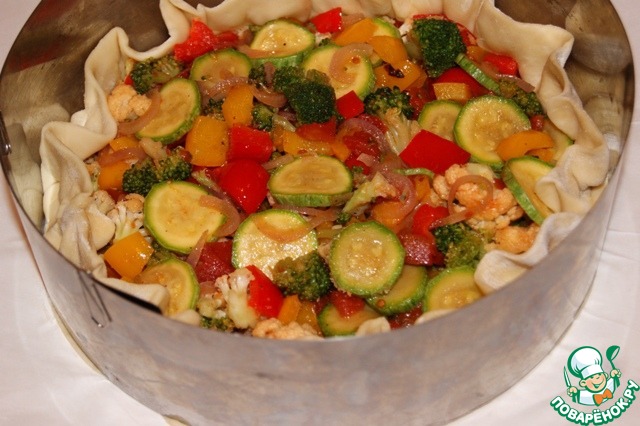 Надеть сверху кулинарное кольцо или кольцо от формы. Выпекать в прогретой до 180"С духовке 30 минут. Ориентируйтесь на вашу духовку!