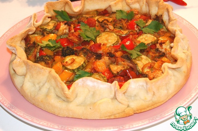 Готовый пирог освободить от кольца и украсить зеленью петрушки. Дать чуть- чуть постоять.