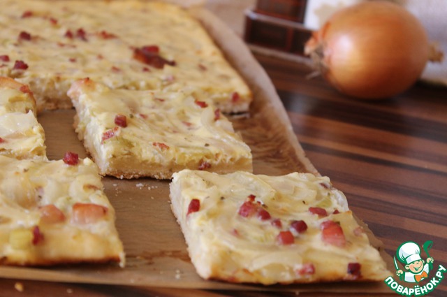 | Дорогие поварята, хочу с вами поделиться рецептом лукового пирога. Этот рецепт мне дала одна немка, это ее семейный рецепт. Обычно луковый пирог заливается смесью яйца со сметаной, но в этом пироге в начинку входит манка. Мне очень стало интересно и я, конечно, как любитель всего нового, записала сразу его. Ну, вот что у меня получилось. Конечно, точных пропорций мне не дали, пришлось додумывать самой! |