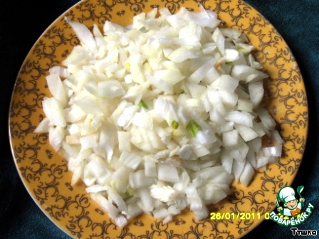 Разогреваем сковороду, добавляем растительное масло и обжариваем лук.