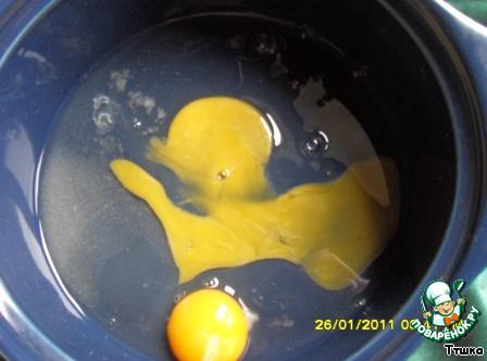 Пока готовится начинка, приступим к приготовлению теста. Берем 2 яйца, 1 ч.л. сахара и щепотку соли.