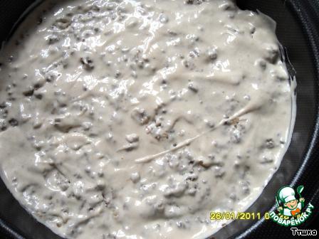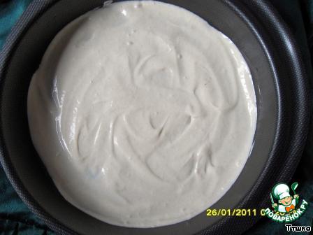 В форму (у меня "Тефаль", поэтому я ее не смазывала) выкладываем 1/2 теста, разравниваем ложкой.