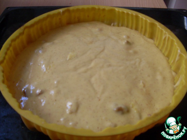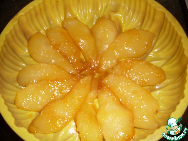 Залить груши тестом. Распределить тесто равномерно, чтобы полностью покрыло груши (у меня они чуток выглядывали)).