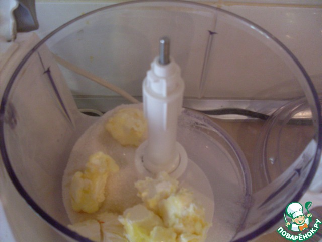 Соединить оставшийся сахар и 150 гр масла и взбивать на небольшой скорости.