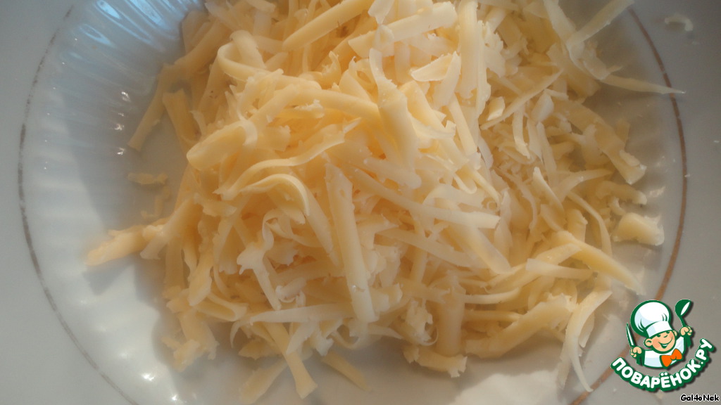 Сыр натираем на крупной терке. 2/3 сыра добавляем в тесто.