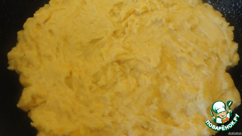 Форму смазываем маслом или выстилаем пекарской бумагой. Выкладываем тесто, равномерно распределяя по всей форме.