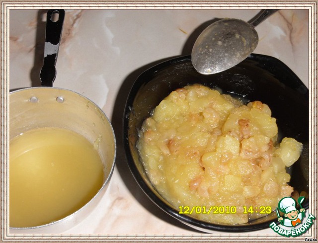 Смешать творог с сахаром и сиропом от варки яблок,