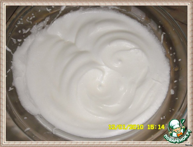 Отдельно в миске взбить белки до пиков.