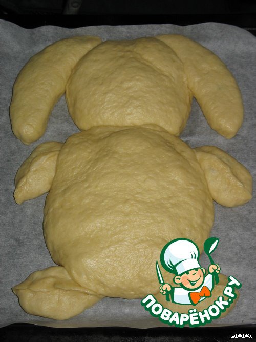 Дать зайке минут 20 расстояться. Затем смазываем его яйцом или