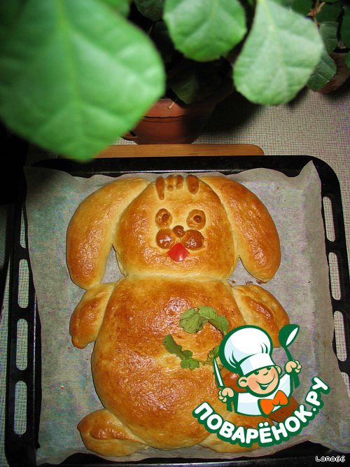 | Вчера вечером у меня возникла идея испечь на завтрак пирог, да не просто пирог, а в виде зверя. А чтобы удивить и заставить поесть своих мальчишек я испекла зайца, которого начинила разными начинками, для папы и для сыновей. Очень они были рады, когда утром, на столе, увидели печeного зайца. Так что завтрак у нас прошел на ура! Выставляю на ваше обозрение и на конкурс "В мире животных". |