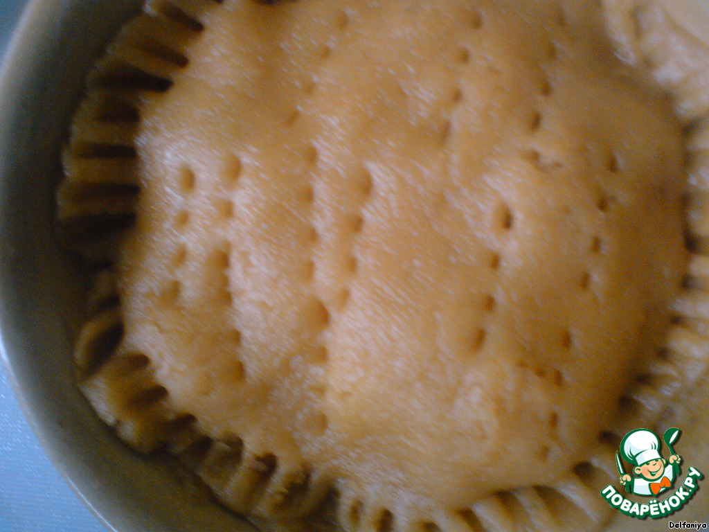 …накрыть сверху начинку, подоткнуть края и прижать их вилкой. Проколоть вилкой в нескольких местах. Убрать в холодильник еще на 20 мин.