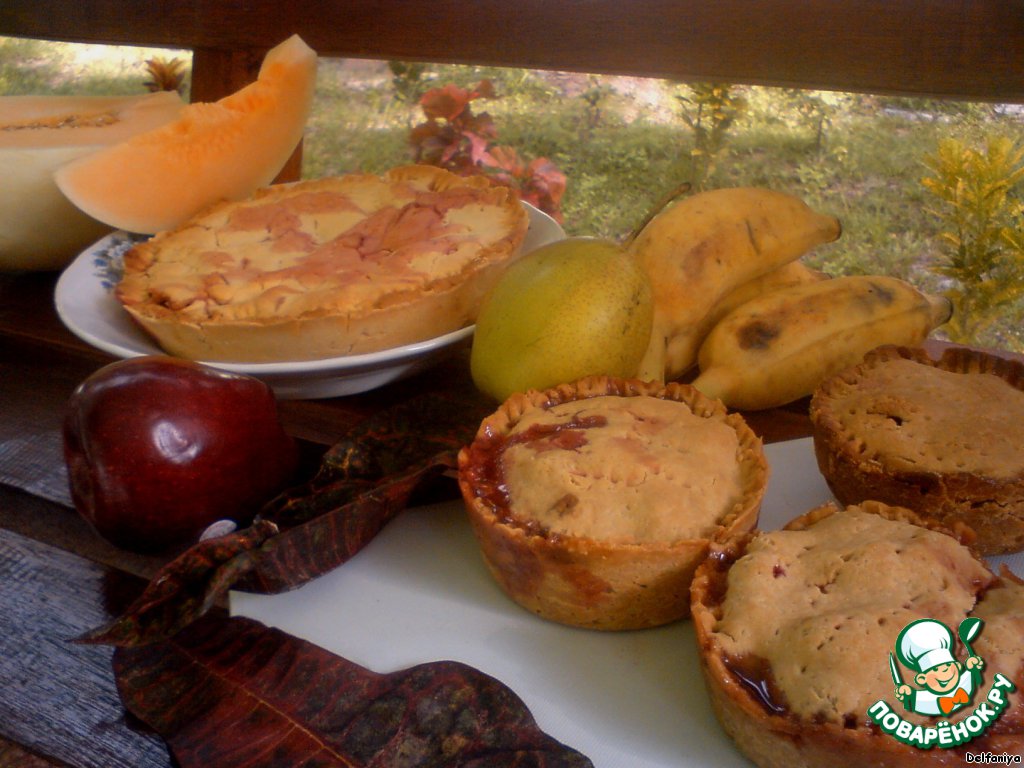 | В Москве я покупала часто такие штучки. Назывались они, кажется, «Ягодное лукошко». А еще в Крошке-картошке любила брать «Яблочный (или вишневый) пай». Давно хотела их приготовить, подбирала рецепты теста. И, наконец, решилась сделать себе такой подарок на день рождения. Можно делать и в большом варианте! Если нет маленьких формочек или для фанатов больших пирогов. (По секрету также скажу – с большим проще и быстрее). Но маленькие для меня все же симпатичнее. Особенно к приходу гостей аккуратно и удобно – резать не нужно. |