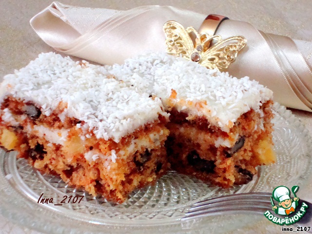 | Вкуснейший пирог с морковью, орехами, ананасом и корицей. Даже если не любите морковь, все равно рискните и испеките его. И Вы не разочаруетесь во вкусе. Только не убирайте никакие ингредиенты. Олечка, спасибо тебе за рецепт! |
