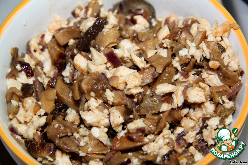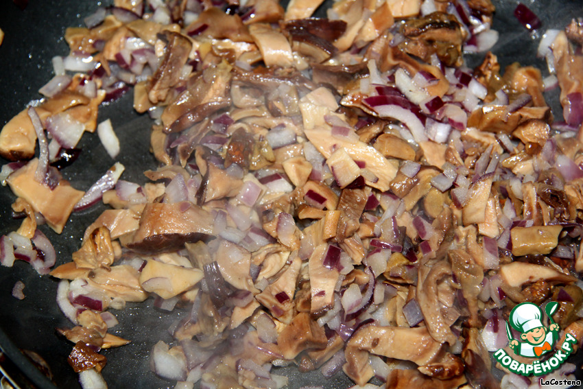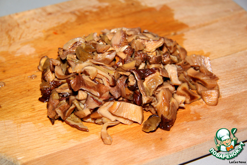 С вечера замочила сухие белые грибы, утром слила жидкость, грибы мелко нарезала.