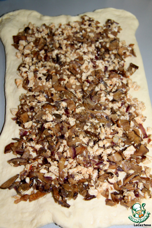 Взяла готовое слоеное дрожжевое тесто и раскатала в длину.