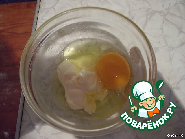 В отдельной мисочке смешиваем 1 яйцо и 1 столовую ложку майонеза.