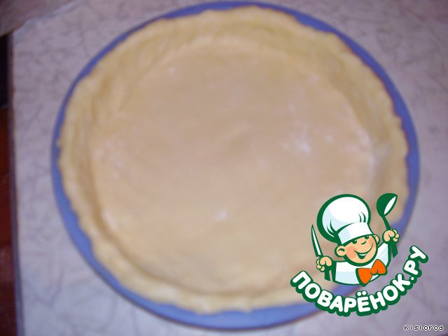 Тесто достаем, слегка раскатав его, кладем в форму смазанную растительным маслом и руками формируем бортики и отправляем в духовку на 20 минут при температуре 200 градусов.
