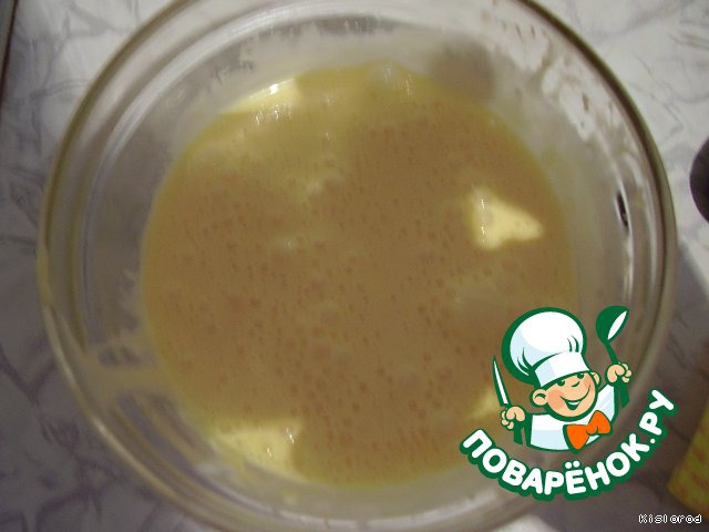 Этой массой заливаем начинку слегка перемешивая.