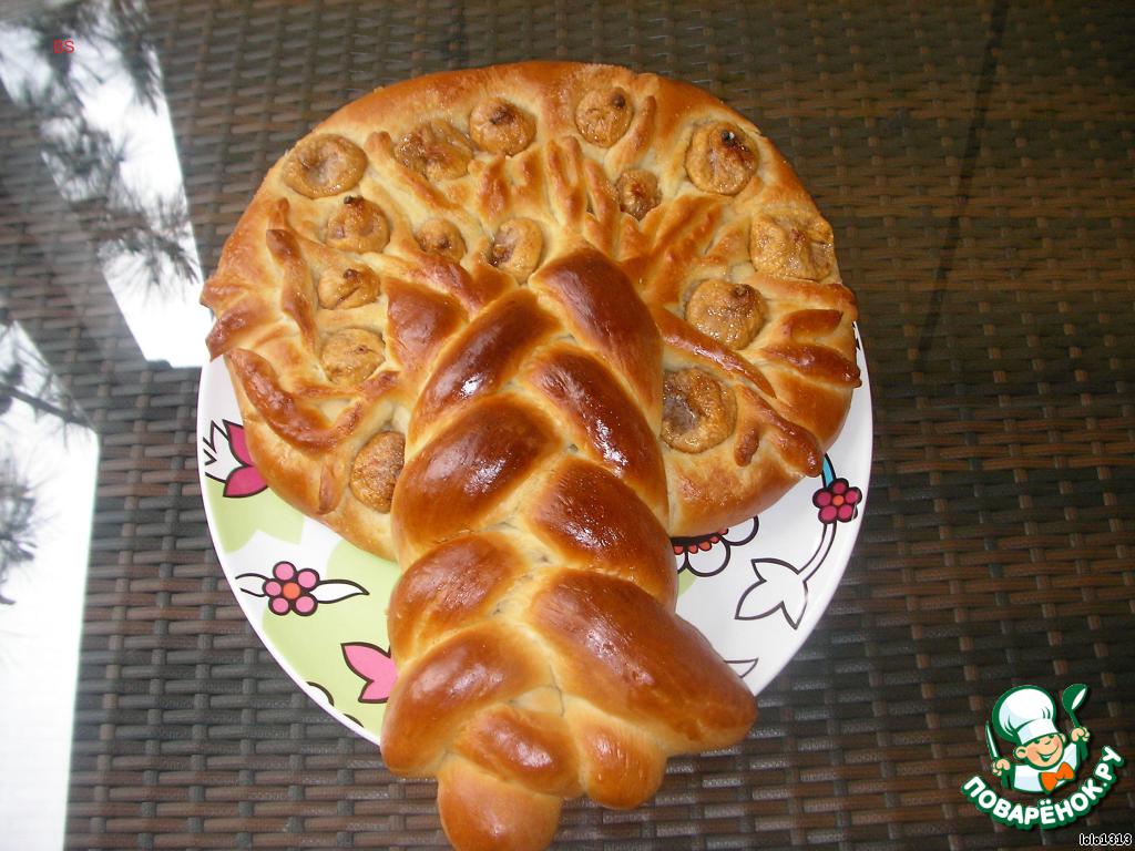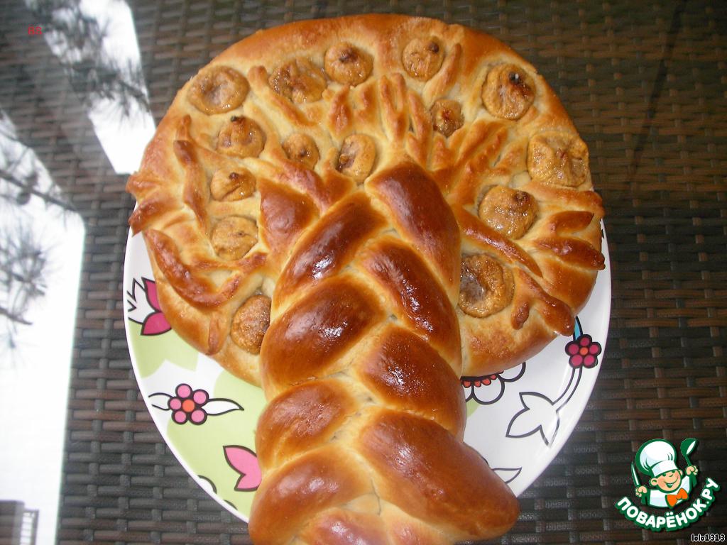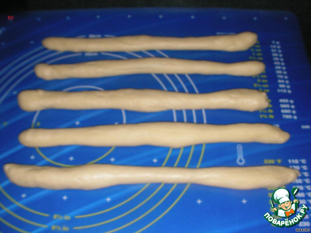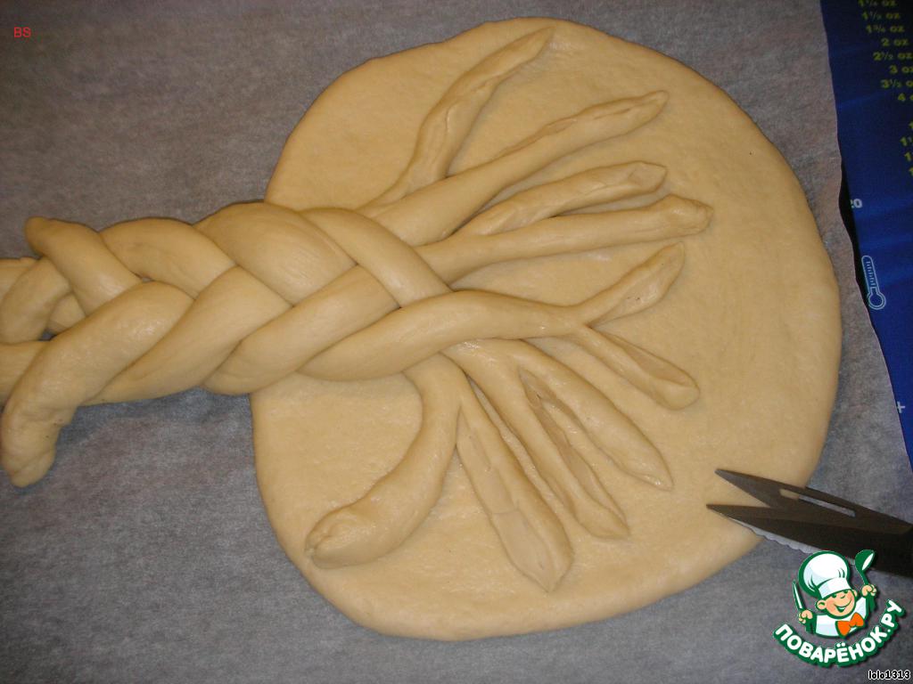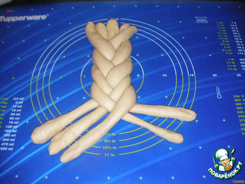 Переложить косу на круг таким образом, чтобы придать двум частям теста форму дерева.