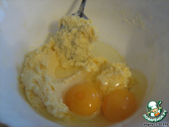 Готовим тесто: мягкое масло взбиваем с сахаром,