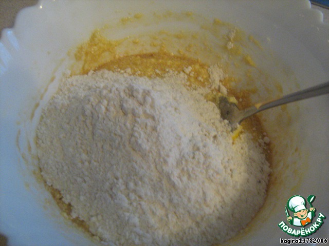 Затем вливаем ром, добавляем порциями муку и замешиваем мягкое тесто.