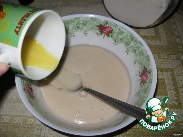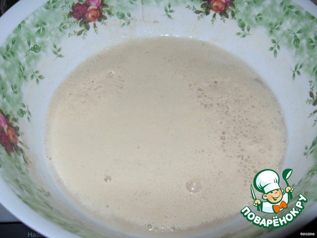 Дрожжи растопить в теплой воде, дать постоять 10 минут до полного растворения.