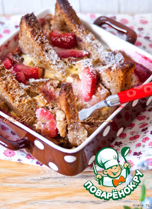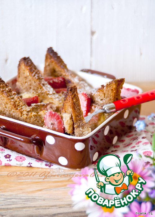 Пирог-запеканка из чeрствого чeрного хлеба и клубники