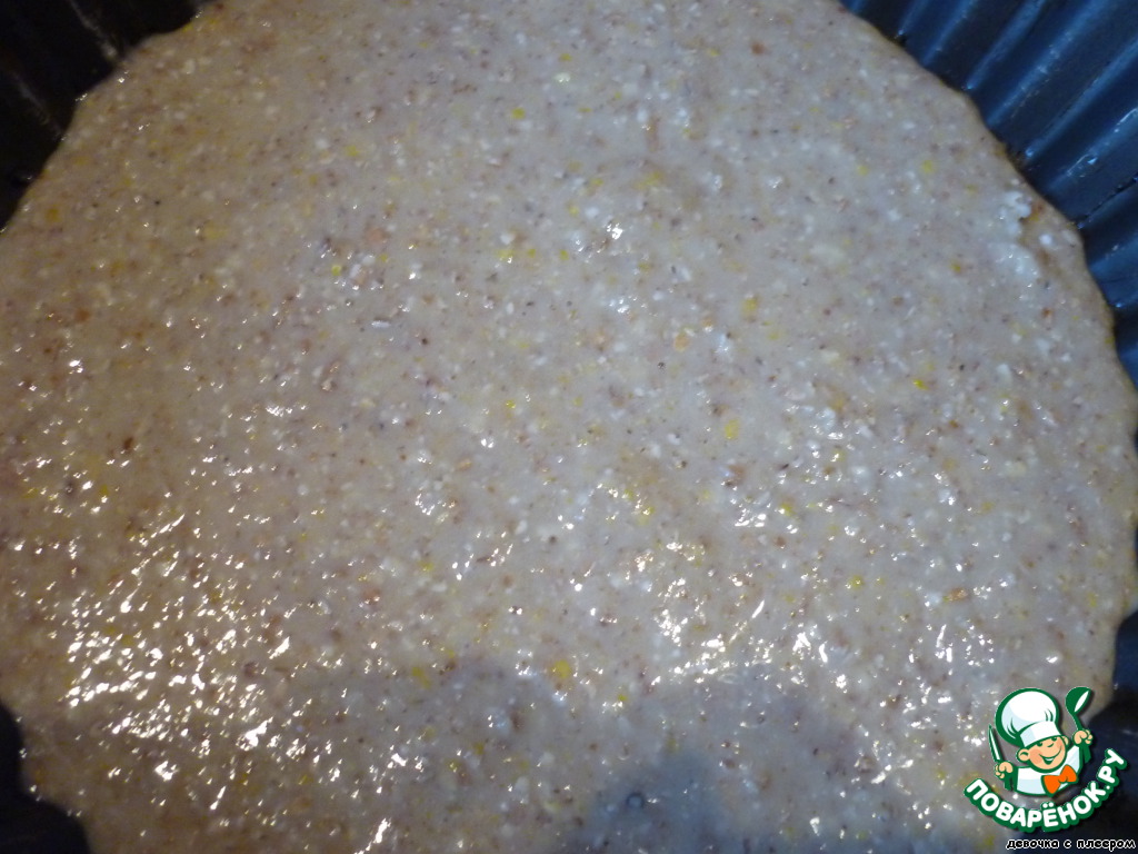 На основу выложить крем и запекать в духовке 60 минут при 180 градусах.