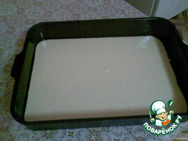 Приготовить тесто: яйца, ванилин, сахар взбить миксером, добавить муку и снова взбить. Половину теста вылить в смазанную маслом форму.