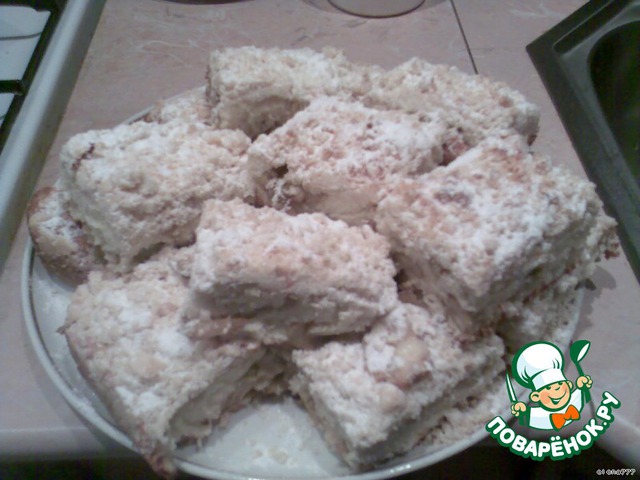 Разрезать пирог на кусочки, посыпать сахарной пудрой.