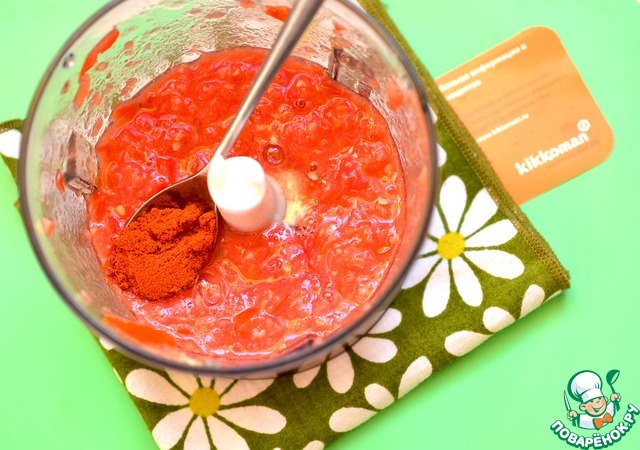 Оставшиеся помидоры прокрутить в блендере, добавить паприку сладкую.
