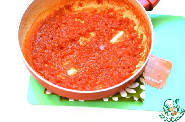 Оставшиеся помидоры прокрутить в блендере, добавить паприку сладкую. Тушить на огне до испарения жидкости (3 мин.)