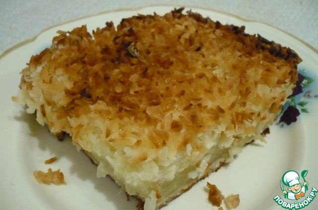 | Рецепт 2 года назад был найден на одном из сайтов. И очень он у нас прижился. Делается просто. Продукты самые простые, правда иногда приходится кокос поискать. На сайте есть 4 варианта подобного пирога, но у меня немного другая раскладка продуктов. |