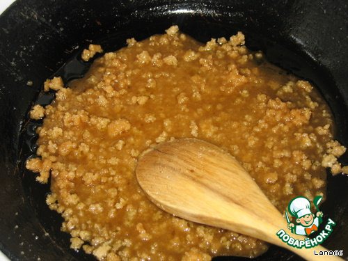 Для карамели взять 3/4 стакана сахара и растопить в сливочном масле.