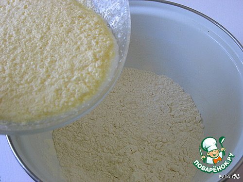 Соединить муку с яично-молочной смесью.