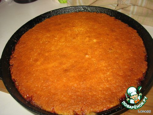 | Рецепт этого вкусного пирога нашла в интернете. Очень нежный и тающий во рту пирог. От себя добавлю, что я бы в следующий раз ингридиенты для теста увеличила вдвое, чтобы его было побольше и он был повыше. :) |