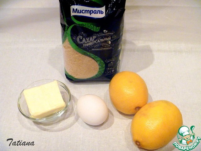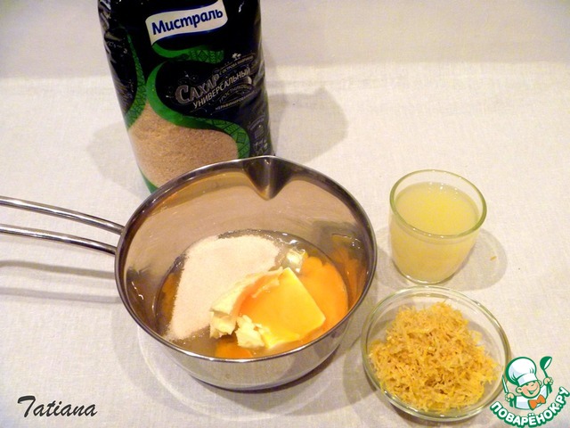 В небольшую кастрюльку насыпьте сахар, добавьте мягкое масло, яйцо + 2 ст. л. лимонного сока.