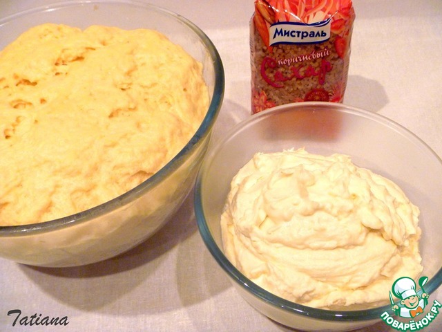 ... тесто "подошло", крем смешан, заготовим "косу"...
