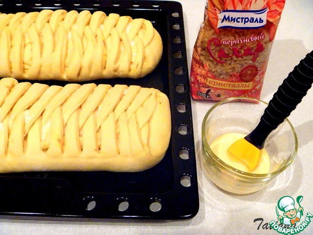 Перед выпеканием верх булок смажьте оставленным желтком, присыпьте кристалличеким коричневым сахаром.