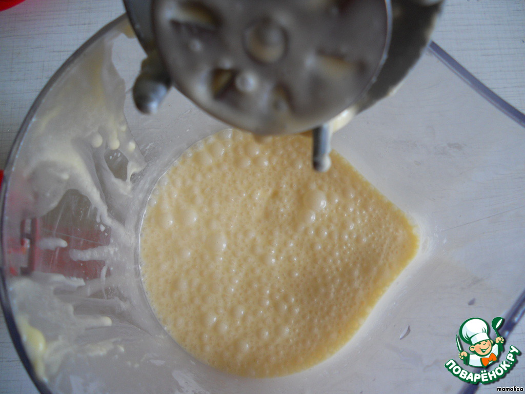 Влить размягченный маргарин, взбить. Добавить пряности, вино, разрыхлитель, муку. Взбить тесто. Оно должно быть по консистенции как густая сметана.