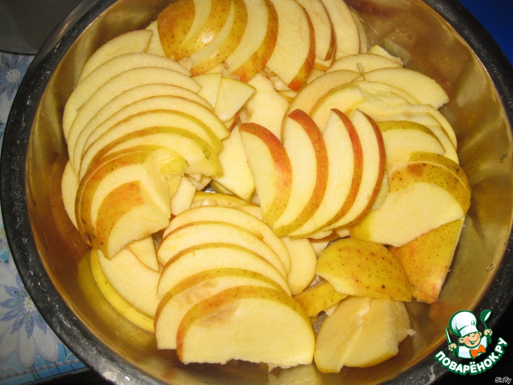 Яблоки очистить от семян и нарезать дольками.