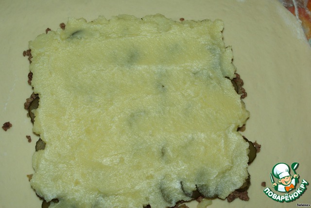 Пирог с картошкой, фаршем и солеными огурчиками