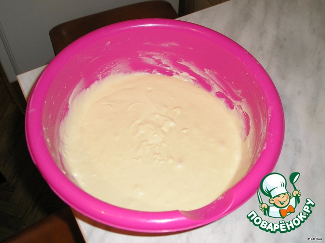 Утром))) Делаем тесто. Смешиваем все ингредиенты. Тесто по консистенции должно быть как сметана.