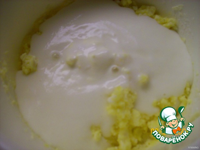 Делаем тесто. Маргарин мягкий, желтки, 1 ст.сахара - все перемешать